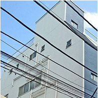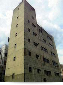 外壁モルタルの劣化(亀裂、割れ、爆裂)が見受けられる5階建てビル。