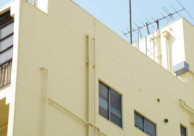足場不要の工事は隣との間隔50㎝から施工が可能です。今まで足場が立たずあきらめていた狭い所にある壁も、綺麗にお手入れすることが可能ですので建物全体の寿命を延ばすことが出来ます。また、足場からの侵入による被害も防ぐことが出来ます。