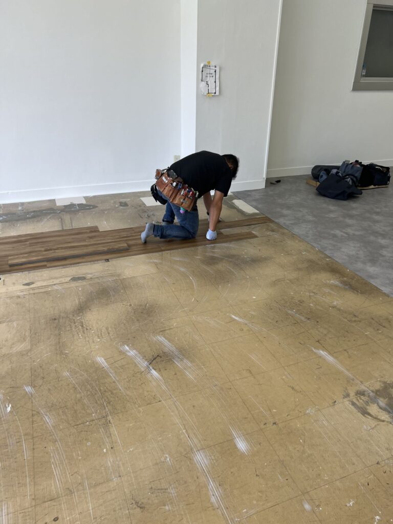 床の下地がかなり悪かったので、下地処理が大変でした。