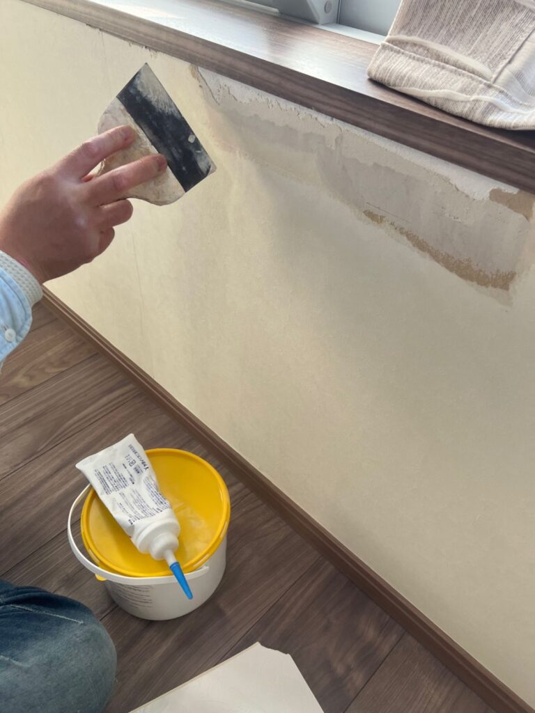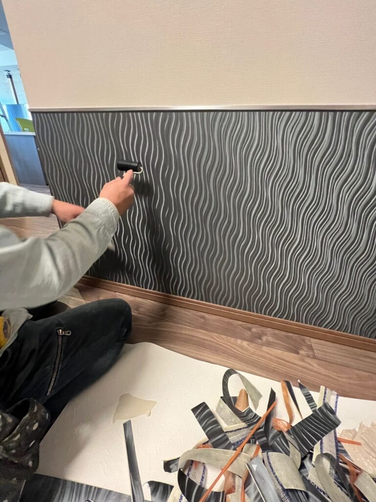 クロスの下地が限界でした。現状のクロスの上にペンキが塗装されていたので、一番苦労しました。現状のクロスの剥がしと下地処理が想定よりも時間がかかりました。