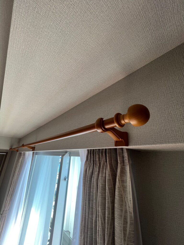 予想以上の出来映えです。あとは、愛猫が引っ掻いてくれないといいなあ。木製レールの設置ありがとうございます。こちらも完璧でした。ちょうどハンガーがかかり大変満足です。